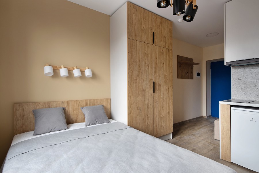 | Студия 2-местный | 25 кв.м. | 2 чел. | Мебель (вешалка, зеркало, кровать двуспальная, прикроватные тумбочки, стол, стулья, шкаф), Мини-кухн... |